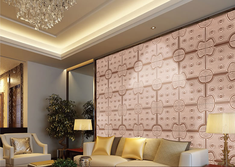 寓意内涵:日新月异皮雕软包背景墙以明快的色调为主,给人眼前一亮的感觉,格调明朗,暖意无限,营造轻松和谐的氛围。推荐用于客厅沙发或电视背景墙设计。