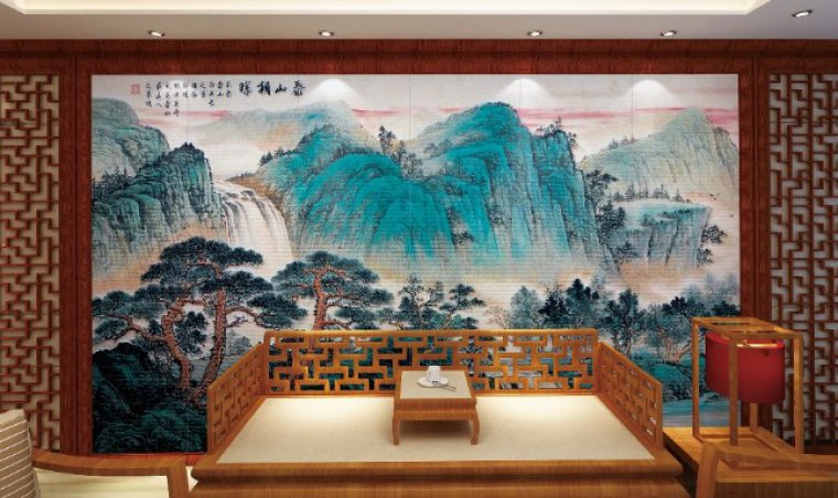 东岳泰山会客室皮饰浮雕背景墙介绍
